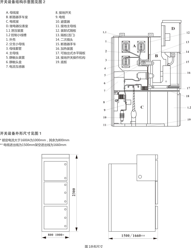 開關(guān)設(shè)備采用中置式,因而電纜室空間較大。電流互感器7、接地開關(guān)8裝 在隔室后壁上,避雷器10安 裝于隔室后下部。將手車15和抽出式水平隔板17 移開后,施工人員就能從正面進(jìn)入柜內(nèi)安裝和維護(hù)。電纜室內(nèi)的電纜連接導(dǎo)體,每相可并1-3根 單芯電纜,必要時每相可并接6根單芯電纜。聯(lián)接電纜的柜底配制開縫的可卸式非金屬封板或不導(dǎo)磁金屬封板,確保了施工方便。
