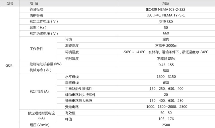 GCK低壓抽出式開(kāi)關(guān)柜,主要是由一些組合式電動(dòng)機(jī)控制單元,和其它功能單元組合而成。這些單元以上下重疊的方式安裝在封閉的金屬柜體內(nèi)。用設(shè)置在柜體上方的水平母線(xiàn),將每個(gè)柜體聯(lián)結(jié)在一起,同一柜體的功能單元?jiǎng)t并聯(lián)在垂直母線(xiàn)上。柜體共分水平母線(xiàn)區(qū)、垂直母線(xiàn)區(qū)、電纜區(qū)和設(shè)備安裝區(qū)等四個(gè)互相隔離區(qū)域,功能單元分別安裝在各自的小室內(nèi),當(dāng)任何一個(gè)功能單元發(fā)生事故時(shí),均不影響其它單元,防止事故擴(kuò)大。本產(chǎn)品符合JB/T9661-1999標(biāo)準(zhǔn)。該產(chǎn)品采用IEC114規(guī)定的IP40防護(hù)等級(jí),當(dāng)所有的門(mén)和護(hù)板關(guān)閉時(shí),或門(mén)開(kāi)啟時(shí)以及功能單元外于移出位置時(shí),均能達(dá)到相應(yīng)的防護(hù)等級(jí),這樣可確保人身安全。該產(chǎn)品設(shè)置有完善可靠的接地系統(tǒng)和保護(hù)電路,所有功能單元均能按規(guī)定的性能要求,分?jǐn)喽搪冯娏鳎M(jìn)線(xiàn)單元具有三段保護(hù)特性。因此,可以保證供電的可靠性,和設(shè)備與系統(tǒng)的安全。所有功能單元,均可通過(guò)接口件與PC線(xiàn)板(可編程序控制器)或微處理機(jī)連結(jié),作為自動(dòng)控制系統(tǒng)的執(zhí)行單元,根據(jù)用戶(hù)需要還可以提供其它內(nèi)容的功能單元和功能組合,該產(chǎn)品適用于交流380V,頻率50Hz的電路中。
