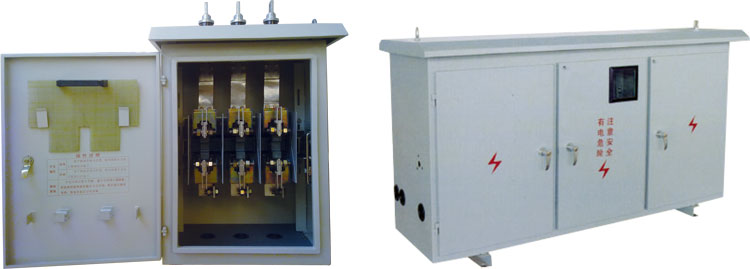 我公司開發試制了BWX-Z系列低壓柱上綜合配電箱。該裝置既能對柱上公變低壓側配電線路進行分配控制和保護,刀熔開關采用HR□系列隔離開關熔斷器組合電器,刀熔開關無需打開箱門操作,就能實現開關的分、合閘。本產品分為帶無功補償裝置和不帶無功補償裝置兩種型式??蓪崿F電能計量、測量電流、電壓、功率因數等功能,對柱上公變的出線運行狀況進行實時監測,為供電部門調查運行狀況,制定最經濟、安全的運行方案及設備的增容等提供一套 完整的數據,該裝置的開發成功,改變了原有產品懸掛式配電箱的多種不足,集多種功能于一體,安裝、操作、檢修方便,降低了電力工人的勞動強度,又整潔城鎮市容,有利于城鎮公變及農村配變的標準化、規范化管理。